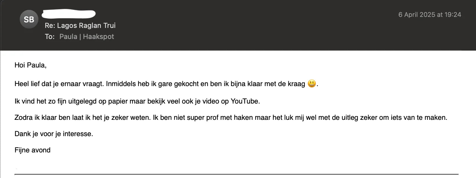 Daarnaast is Haakspot mijn fulltime job. Om de beste kwaliteit voor mijn klanten en community te waarborgen, ben ik er elke dag van vroeg tot laat druk mee en heb bijna geen tijd meer om er ander werk naast te doen. Ik ben dus afhankelijk van het inkomen uit Haakspot.
