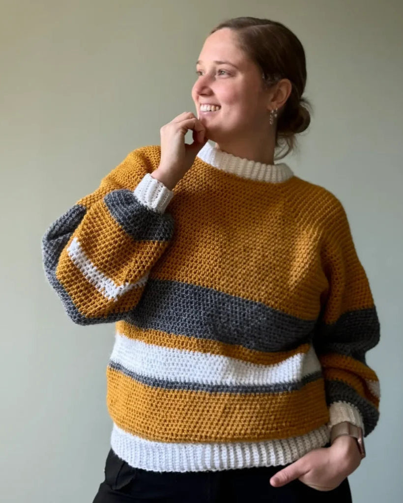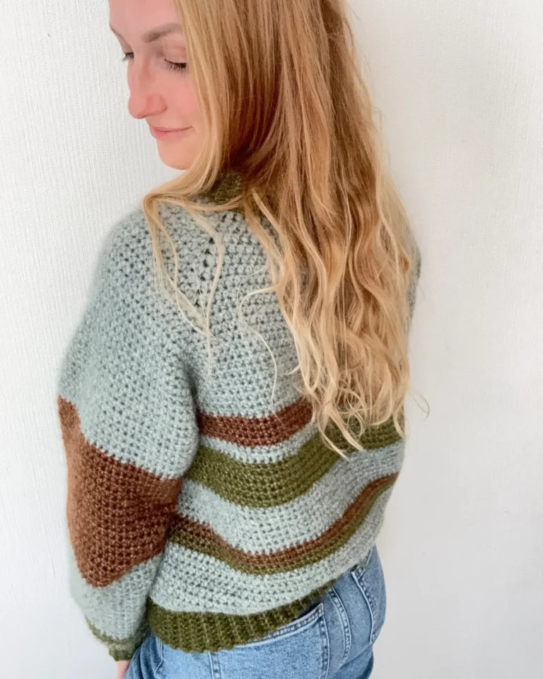Over elk detail is nagedacht: je haakt de trui in één geheel, zodat je (bijna) niks hoeft te naaien. Daarnaast is de trui made to measure, waardoor hij gemakkelijk aan te passen is op elke maat en elk body type.